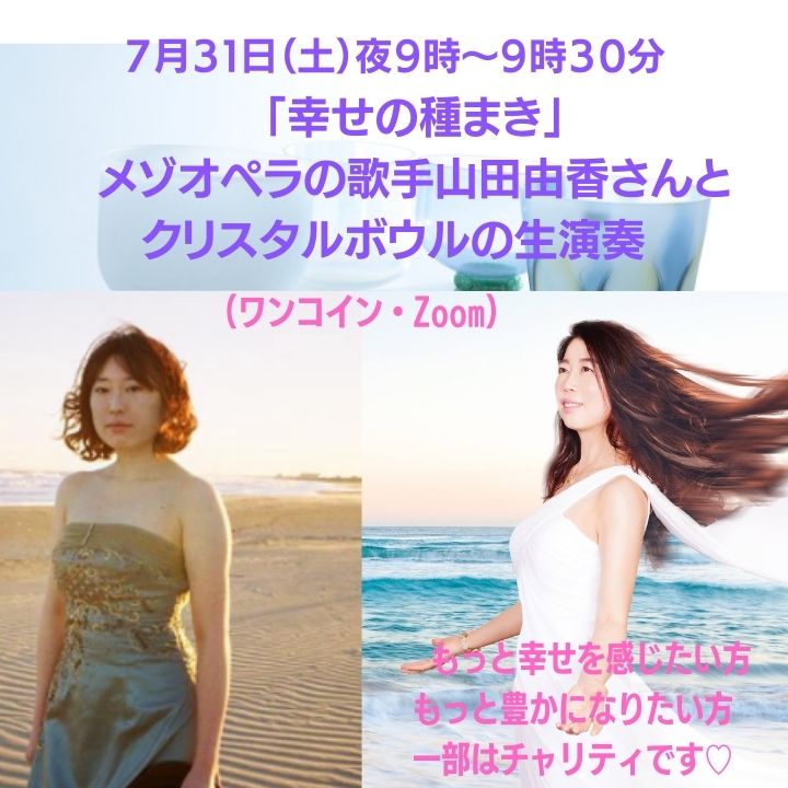 7月のクリスタルボウル生演奏「幸せの種まき」の日程が決まりました!7月31日夜9時〜9時30分 Zoomで開催です♡スペシャルゲストにオペラ歌手の山田由香さんがご出演されます♡|ミラ (MIRA) @MIRACRISTAL #note https://t.co/QQ4E7dk6gX